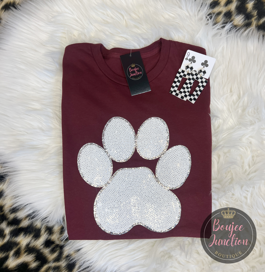 Maroon Sequined Paw Print Tee