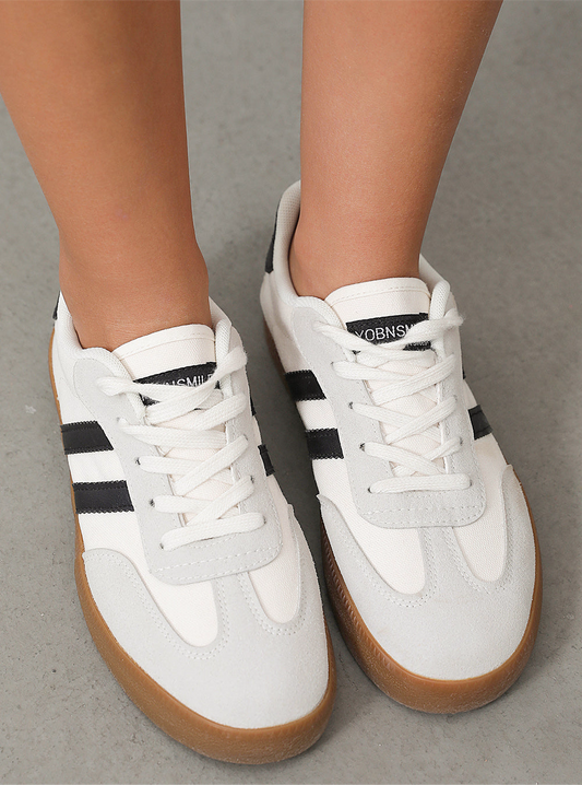 Gold Leather Patchwork Zipper Lace-up Sneakers