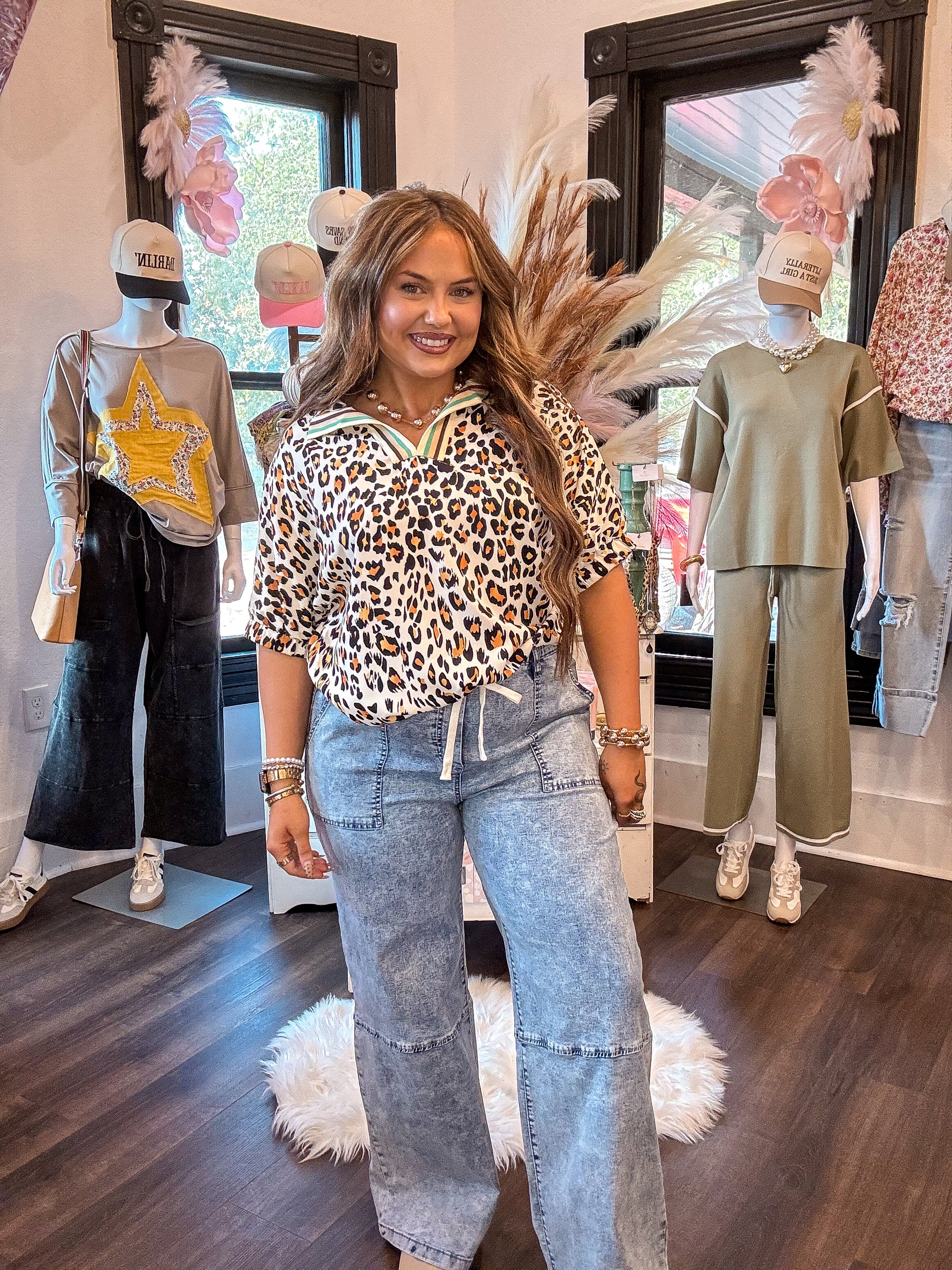 This leopard blouse is wild and fashionable to make statements.